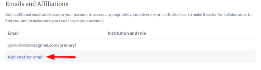 3. Click on ‘Add Another email’ under emails and Affiliations.