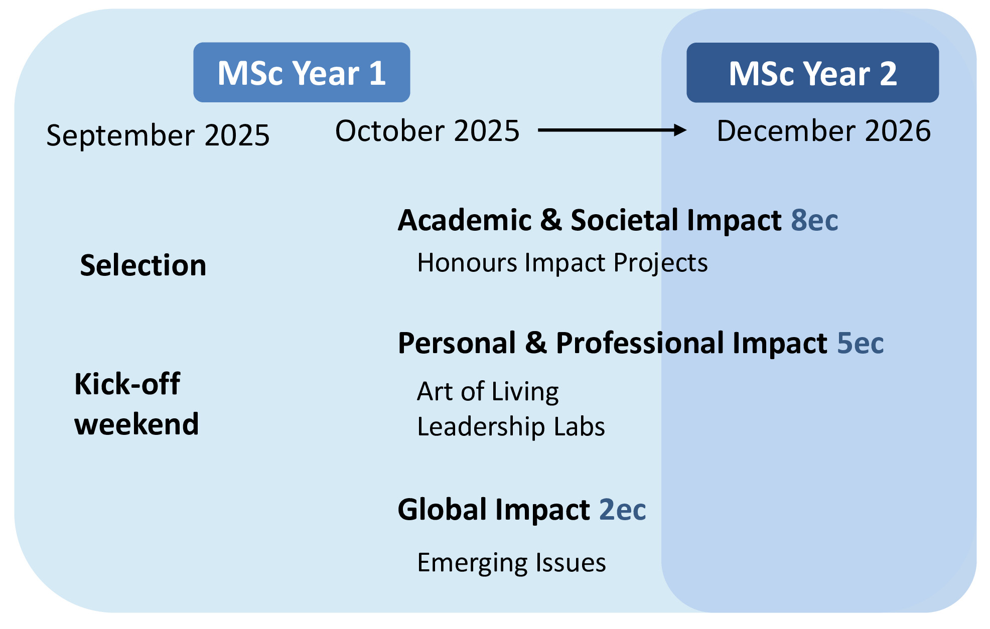 The MSc Honours Programme gives you the opportunity to further develop your talents and interests within and outside your study domain. This is an environment where you are encouraged to experiment with new ideas and ultimately collaborate across cultural, professional, and personal boundaries. An important aim of the MSc Honours Programme is to support students in their endeavor to engage in positive academic, professional, personal and societal impact. The leadership track forms the basis of a strong honours community in which together we explore the broad concept of leadership and the art of living. There is one Master Honours Programme for the entire university.